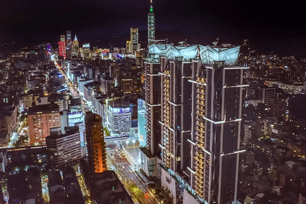 臺(tái)北之星的建筑外觀照明設(shè)計(jì)以云帶為綴,并聚焦于鉆石屋頂。